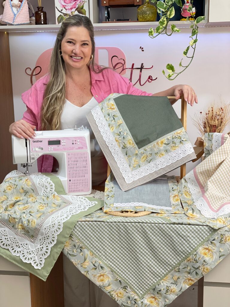 Descubra como criar caminhos de mesa, lugares americanos, toalhas de chá e de mesa em diversos tamanhos e modelos com acabamento perfeito, seguindo um passo a passo prático e com suporte completo!